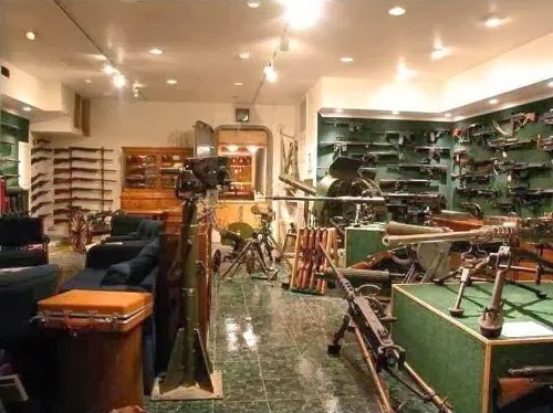 The photograph of a ‘weapons cache’ accompanying the article shows a mere five long guns (rifles and shotguns) and seven handguns, for a total of twelve firearms. I could multiply that total a couple of times before running out of the contents of my gun safe, and I don’t have a particularly large collection. Some of my friends could out-do me by an order of magnitude! Consider, for example, these photographs of private – yes, private – gun collections borrowed from this thread on AR15.com (click over there to see many pages of similar pictures – it’s a feast for the eyes of any firearm hobbyist!).