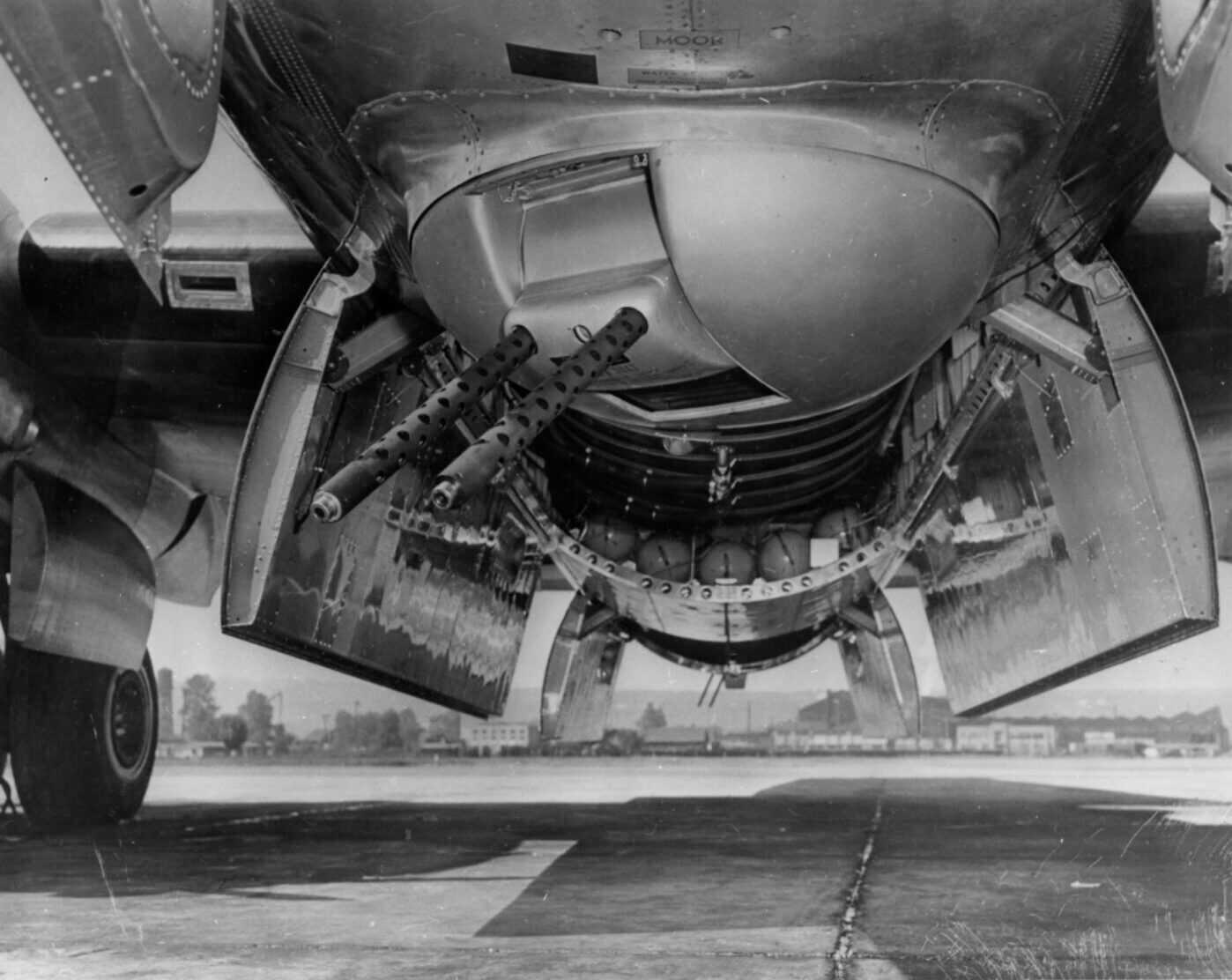 These guns were slaved to a series of remote sights all governed by an early analog fire control computer. Gunners operating out of blisters on the sides of the plane controlled the massed fire from the remotely-operated turret systems. In practice, this complex system honestly didn’t work terribly well, but it paved the way for truly great things to come.