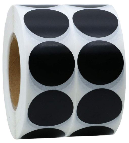 These are the two more expensive ways to practice this drill, by the way; real Cheap Bastards (e.g. Kim) will go to a discount store or online and buy rolls of the little price tags such as made by ChromaLabel, which have the advantage of being multicolored, available in 1″, 3/4″, 1/2″ or even smaller sizes, and they typically cost less than a penny per spot.