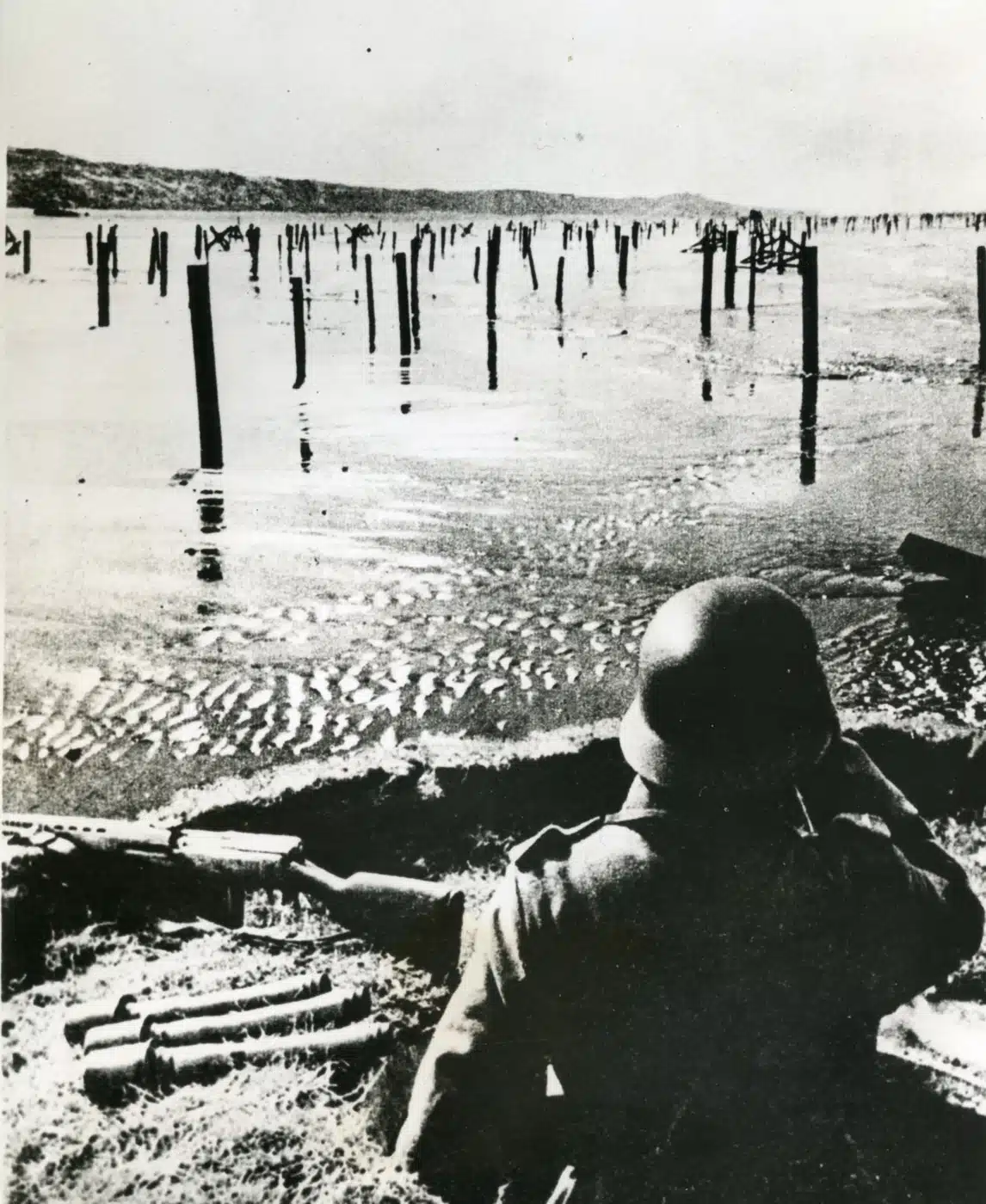 German MG08/15 machine gun in a camouflaged beachside bunker. Image: Author’s collection